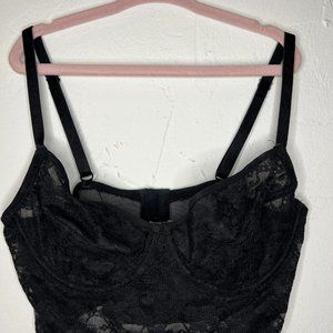 ASOS Black Lace Underwire Longline Bustier Bra, Size S, 34B