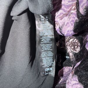 ASOS Black Metallic Purple Floral Organza Puff Sleeve Peplum Top Size 2