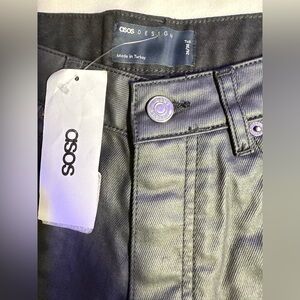 Women’s Parisian coated black flare jeans from ASOS, size 26/36.
