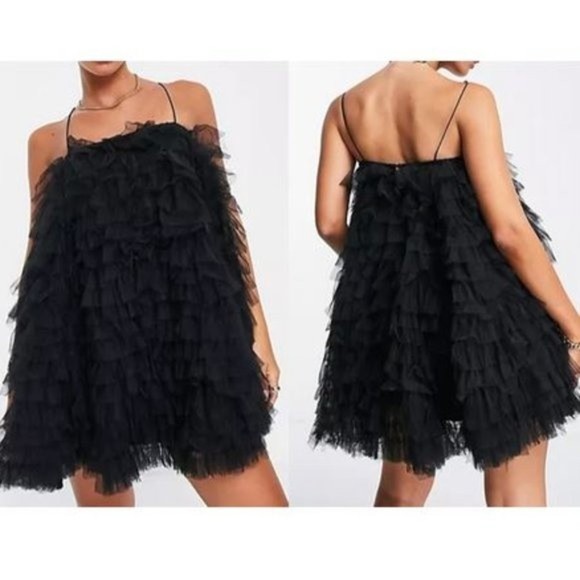 Chic ASOS mini dress with layered ruffles. Elegant black color. Perfect for a night out.