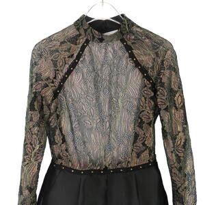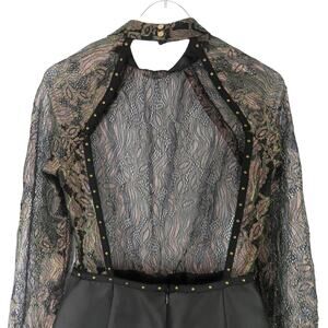 ASOS Black Sheer Lace Metallic Open Back Romper Size 2