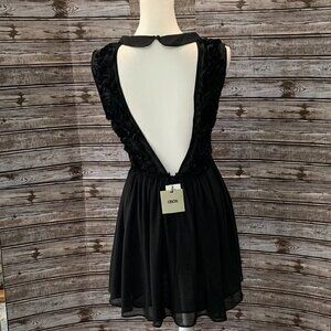 Gorgeous mini dress with floral applique detail on the bodice. Halter neck and deep cut out back.