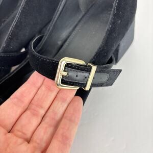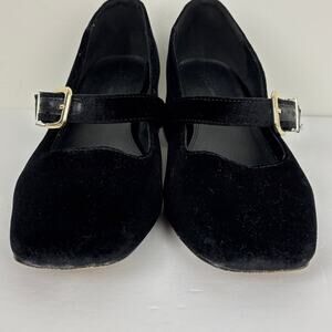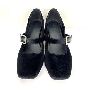 ASOS Black Square Toe Mary Jane Mid Heel Block Heel Velvet size 9 Twee Preppy