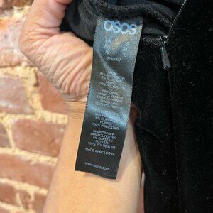 Asos black jumpsuit in excellent preowned condition! Back has a V shape/front is a round neck. Soft velvet and back zipper, has pockets!