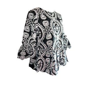ASOS Black White Floral Embroidered Peplum Blouse With Ruffles. Women Size 0