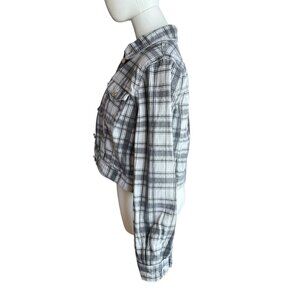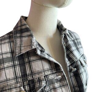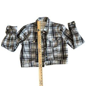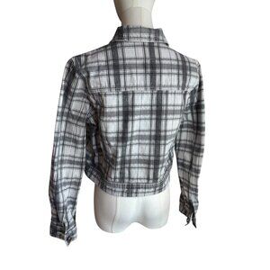 ASOS Black & White Plaid Denim Jacket Size US 8 / UK 12 | Cropped Button Front