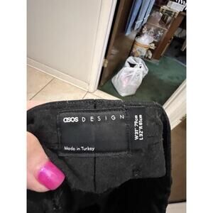 The ASOS Black Window Pane Print Skinny Tapered Leg Trousers in size 31 are perfect for office wear and business occasions. Made from a comfortable cotton blend material, these dress pants feature a flat front, zip closure, and a slim fit. The tapered leg design adds a modern touch, while the black color and window pane pattern give a sophisticated and stylish look. Suitable for all seasons, these machine washable trousers are a versatile wardrobe staple for any woman working in a professional environment.