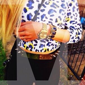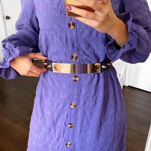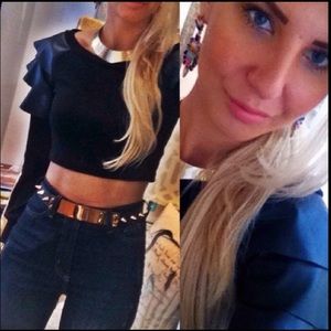 Stylish ASOS belt with gold metallic plate. Black strap with edgy gold studs. Perfect for adding a bold touch to any outfit.