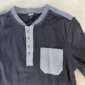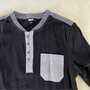 Casual ASOS Henley shirt in black and gray. Features a button-up front and pocket detail. - Preowned - size: xs