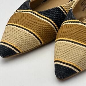 Stylish ASOS sandals with black and tan stripes. Comfortable slingback design. Perfect for casual wear.