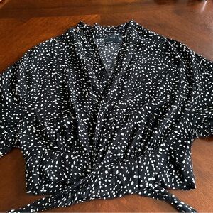 Stylish black and white polka dot top perfect for any occasion. Comfortable and chic, this top is a must-have for your wardrobe.