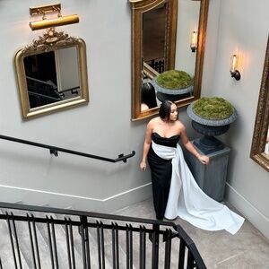 Black and White - Floor length gown. white waist side sash train. Worn once for photoshoot.