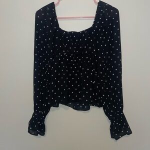 ASOS Black and White Polka Dot Square Neck Off the Shoulder Top Blouse