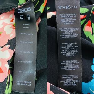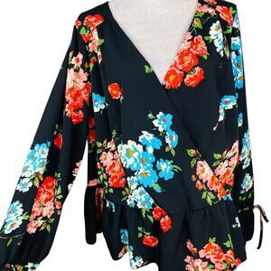 ASOS Blouse Top Size 18 Black Floral Bell Sleeves V-Neck Peplum