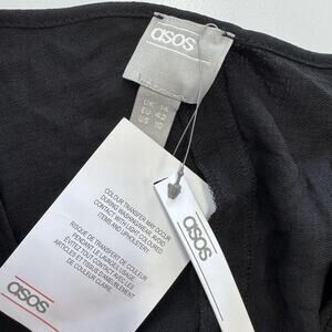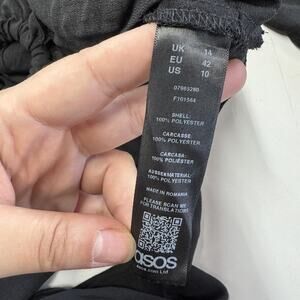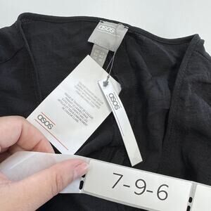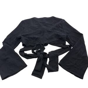 ASOS Blouse Womens 10 Black Tie Front Crop Top Long Bell Sleeve V Neck Wrap