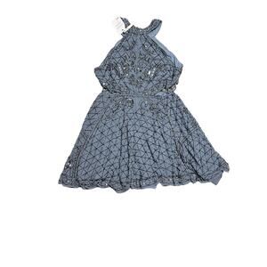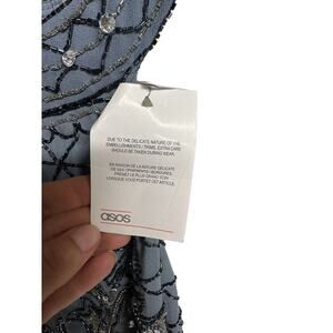 ASOS Blue Beaded High Neck Mini Dress with Cut Outs Sequins Beading Size 14 NWT