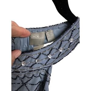 ASOS Blue Beaded High Neck Mini Dress with Cut Outs Sequins Beading