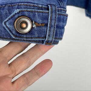 • Oversized fit in this trucker jean vest with raw edge sleeves that almost look homemade cut