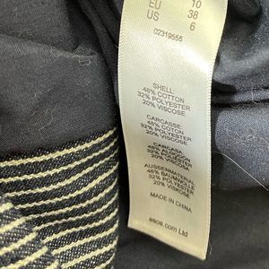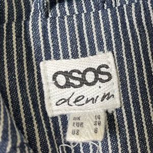 Stylish ASOS trench coat. Features blue stripes. Double-breasted with a belt. Perfect for layering.