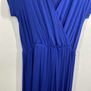 Blue surplice v-neck short cap sleeve maxi dress.