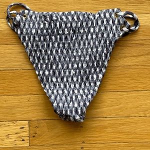 Bottoms have open, double band sides. Sides can be worn low-rise for more more moderate coverage in back or over hip bones for more cheeky coverage.