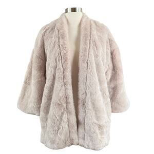 ASOS Reversible Beige/Tan Faux Fur Open Jacket Reversible to Teal Floral Print