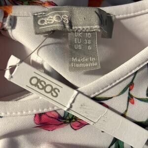 ASOS DESIGN botanical shift mini dress with fluted sleeves NWT - Makeup on the inner collar and sleeve, see all pictures!