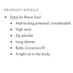 BRAND NEW WITH TAGS: Purchased on ASOS in 2016 didn't end up wearing it. Fits true to size but the fabric is fairly forgiving, which I was surprised by. Not super thick; not super thin. SOLD OUT IN THIS COLOR!