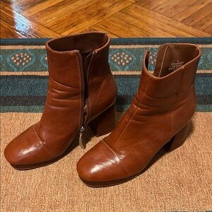 Chic brown leather booties by ASOS. Sleek design with a modern touch. Ideal for versatile styling. Very gently used.