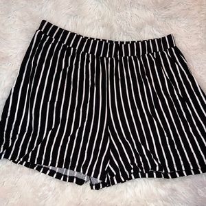 Selling AS set. Not separating. 1 pair of striped culotte shorts, 1 pair of floral culotte shorts, and 1 pair of black drawcord shorts. All have elastic waist. The black and the floral pair are in EUC and the striped pair are in GUC. All three are stretchy at the waist. All are a size US 14. ❌NO TRADES❌