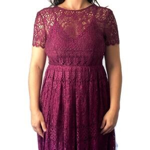 ASOS Burgundy Lace Scalloped Open Back Dress Size 4