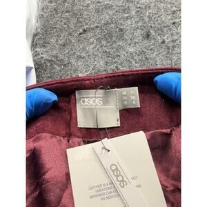 Elegant burgundy midi skirt. Features a wrap design. Perfect for any occasion.