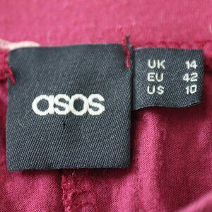ASOS Burgundy Skater Skirt US sz 10 Decorated with Cream Colored Humming Birds
