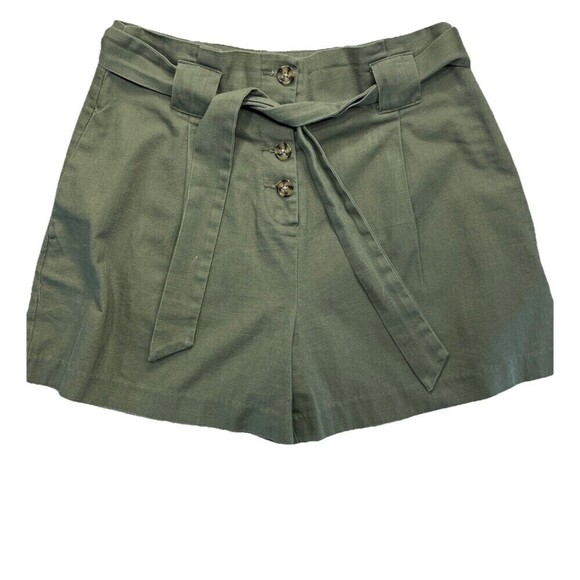 ASOS Button Front Short Size 8 Olive Green High Waist tie belt