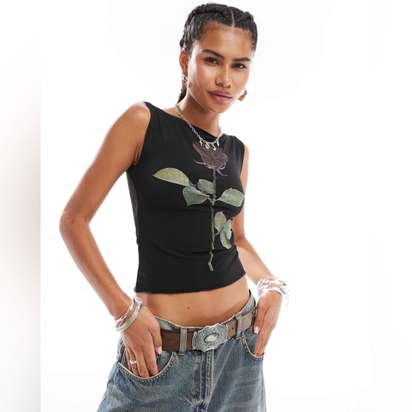 ASOS COLLUSION ROSE PRINT FITTED TOP 2