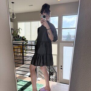 ASOS COLLUSION Tiered Taffeta Smock Dress in Gray