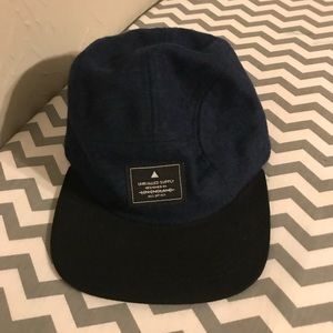 ASOS Cap. Cotton, polyester, wool mix. Navy and black, adjustable. Worn a few times, near excellent condition!