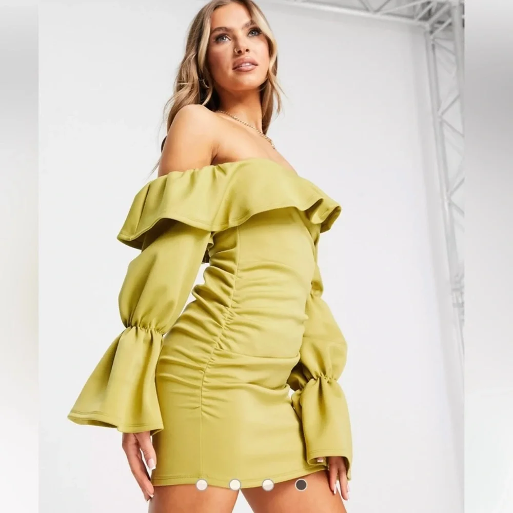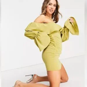 ASOS Chartreuse Ruffle Ruched Dress