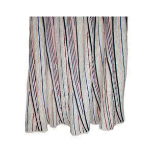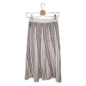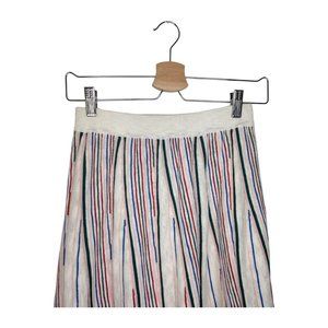 A-line sweater knit skirt. Cream base with multicolor stripes - primary color scheme. Cotton/linen blend.