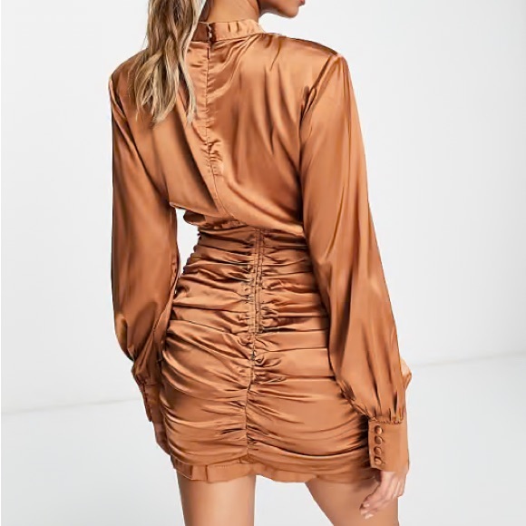 Stunning Gold Cocktail Dress. It’s a dupe of the Retrofete Brea Dress in brown ($680) Worn once, no rips or stains. Super flattering.