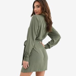 ASOS Collared Wrap Mini Dress Size US 4 Sage Green Minimalist Earthy Softcore