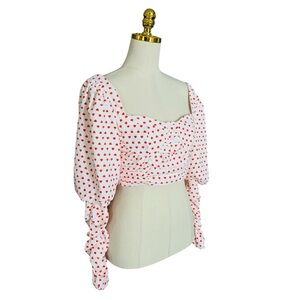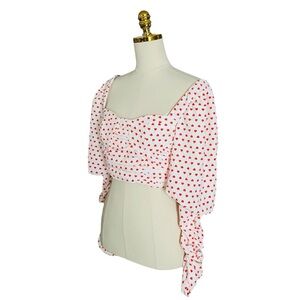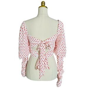 ASOS Collective the Label Bow Back Crop Top in Ditsy Red Hearts Print Size 2
