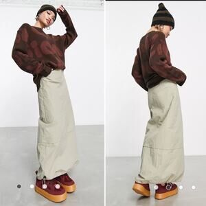 ASOS Collusion Utility Gorpcore Sage Green Khaki Maxi Skirt