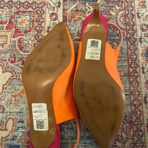 Fun orange and pink kitten heels worn less than 10 times indoors!