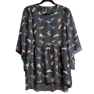 ASOS Colorful Bird Novelty Print Flowy Blouse Top Size 8