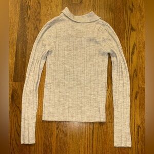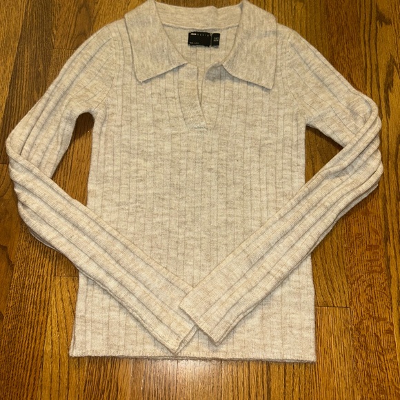 Stylish cream ribbed sweater. Features a classic collar. Long sleeves for warmth. Excellent condition:)