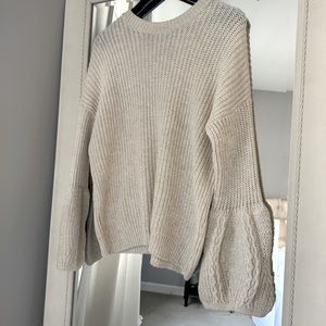 Size 2, ASOS cream sweater, very soft, could fit a 4-6 comfortably, beautiful sleeve detail. Worn once.