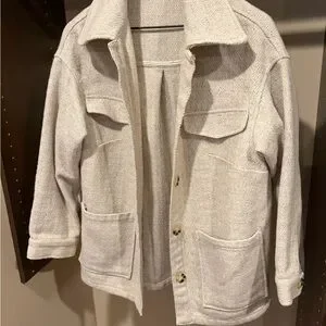 Stylish cream utility jacket by ASOS. Features front pockets and button closure. Ideal for layering.