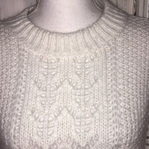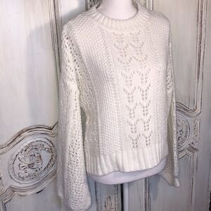 ASOS Crew Neck Long Bell Sleeves Cropped Open Knit White Popover Sweater Size 4