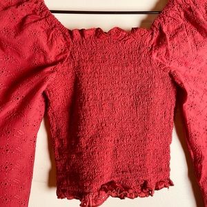 ASOS Crop Top Color: red/coral Puffed sleeves Long sleeve Size: 2 100% cotton Inv: 202-154
